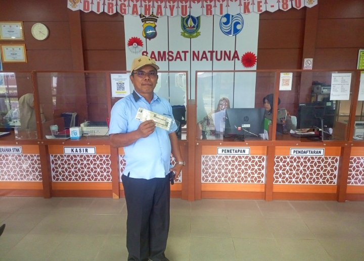 “Sebagai anggota dewan, saya harus memberikan contoh yang baik kepada masyarakat dengan membayar pajak kendaraan. Selain itu, kendaraan yang kita pakai juga harus sudah merupakan plat Natuna. Masih banyak kita liat di jalan-jalan kendaraan masih plat luar Natuna sementara mereka beroperasi di Natuna, tentu pajaknya keluar Natuna. Kalau platnya sudah Natuna, pajaknya pasti kembali ke kita,” katanya.