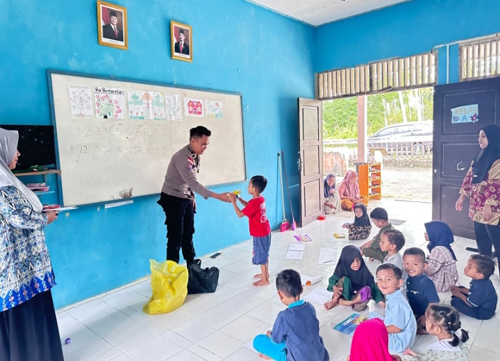 Kehadiran Bhabinkamtibmas di tengah-tengah anak-anak diharapkan mampu memberikan motivasi serta menumbuhkan semangat belajar sejak dini.