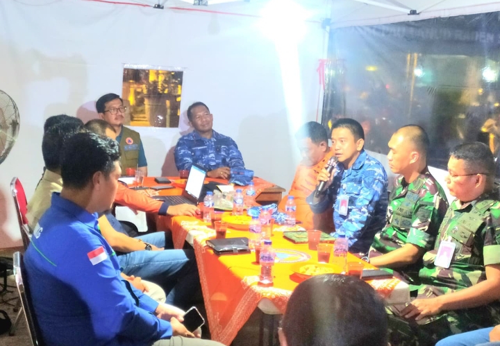 Rapat digelar di Posko Siaga Bencana Pantai Piwang Ranai, Kabupaten Natuna, Provinsi Kepulauan Riau, sebagai upaya memperkuat kesiapsiagaan lintas instansi menghadapi potensi bencana alam.