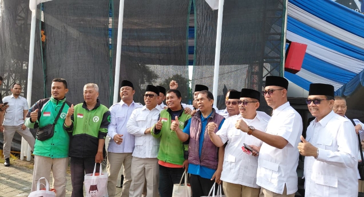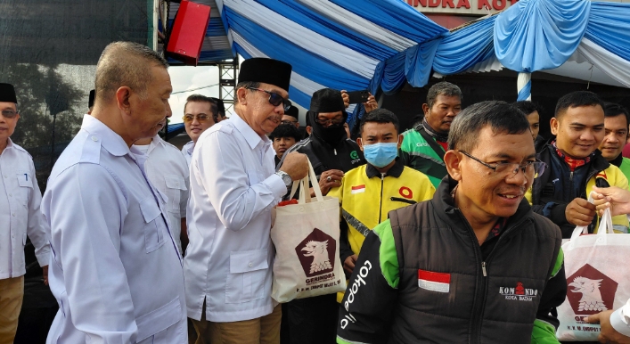 Wakil Bupati Natuna sekaligus Ketua Dewan Pimpinan Cabang (DPC) Partai Gerindra Kabupaten Natuna, Jarmin Sidik, S.E (pakai kacamata hitam dan memegang tas) saat menghadiri peringatan HUT ke-18 Partai Gerindra yang digelar di Kota Batam, Jumat (6/2/2026)/f: ist