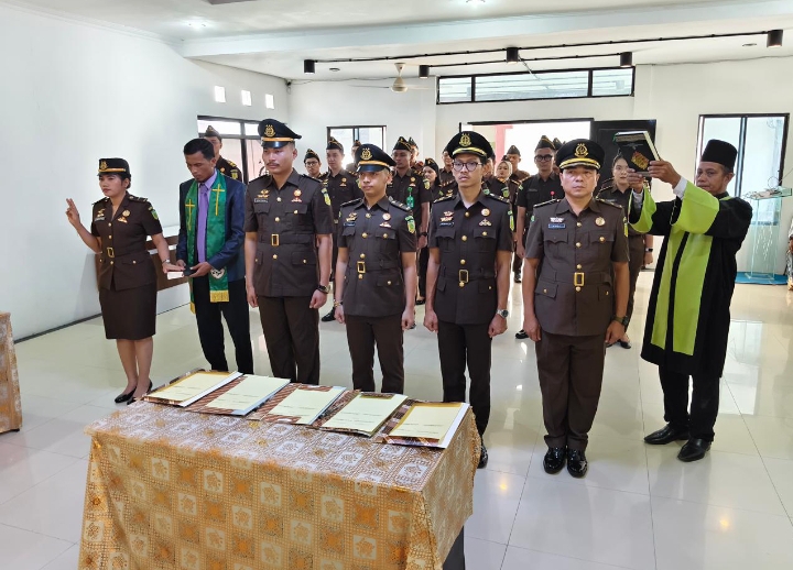 Kegiatan berlangsung khidmat, diawali dengan pembacaan Surat Keputusan Jaksa Agung RI, dilanjutkan dengan pengambilan sumpah jabatan, penandatanganan berita acara, serta penyematan tanda jabatan.