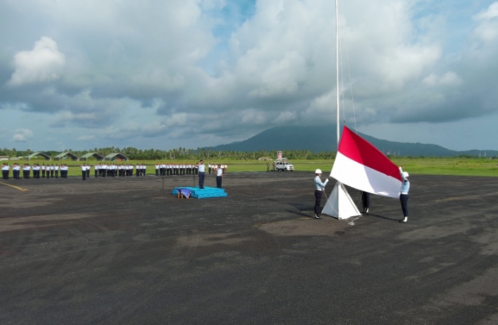 Komandan Lanud RSA Marsekal Pertama TNI Onesmus Gede Rai Aryadi, S.E., M.M., M.Han., bertindak sebagai Inspektur Upacara dan membacakan sambutan resmi Menteri Pemuda dan Olahraga Republik Indonesia (Menpora RI), Erick Thohir.