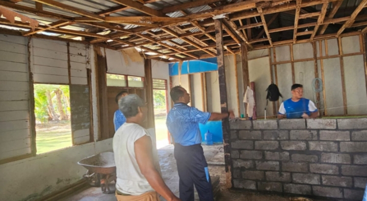 Pekerjaan renovasi meliputi perbaikan dinding bangunan, pemasangan atap, penggantian plafon, serta pengecatan guna menciptakan rumah ibadah yang lebih layak, aman, dan nyaman digunakan.