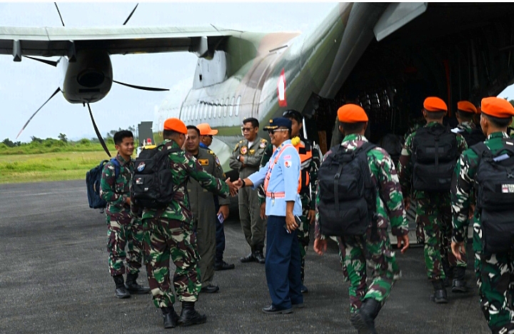 Keberangkatan satu pleton Pasgat diantar Komandan Lanud RSA Marsekal TNI Onesmus Gede Rai Aryadi, S.E., M.M., M.Han., diwakili Kadisops Lanud RSA Kolonel Pnb Dion Aridito, S.T., M.M.