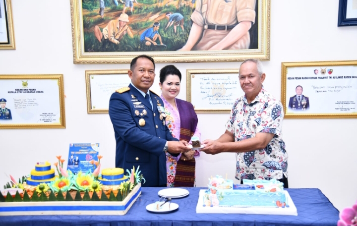 Pada kesempatan yang sama, Komandan Lanud RSA didampingi Ketua PIA Ardhya Garini Cabang 9/D.I, Ny. Marni Onesmus Pasaribu, turut memberikan tali asih kepada Raden Sujatko, putra dari Raden Sadjad, Komandan Lanud Raden Sadjad pertama.