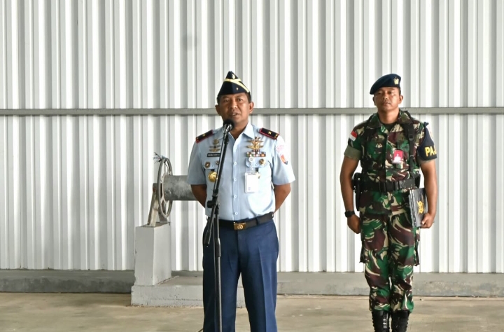 Komandan Lanud RSA (Danlanud RSA) Marsekal Pertama TNI Onesmus Gede Rai Aryadi, S.E., M.M., M.Han., memimpin apel sekaligus menyerahkan piagam penghargaan kepada Kapten Kes Ferri Prandani, S.Kep., Ners., yang telah bertugas 4 tahun 10 bulan di RSAU dr. Yuniati Wisma Karyani Lanud Raden Sadjad.