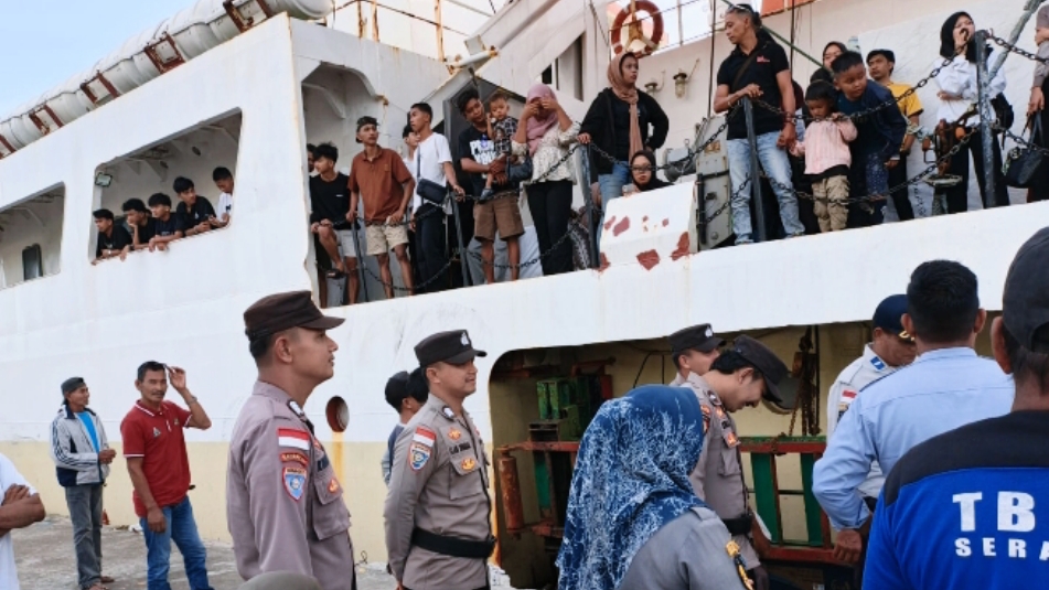 Dalam kegiatan itu, personel kepolisian bersama instansi terkait melakukan pengamanan terhadap proses turun naik penumpang serta pengecekan barang muatan kapal guna memastikan keamanan dan ketertiban di area pelabuhan.
