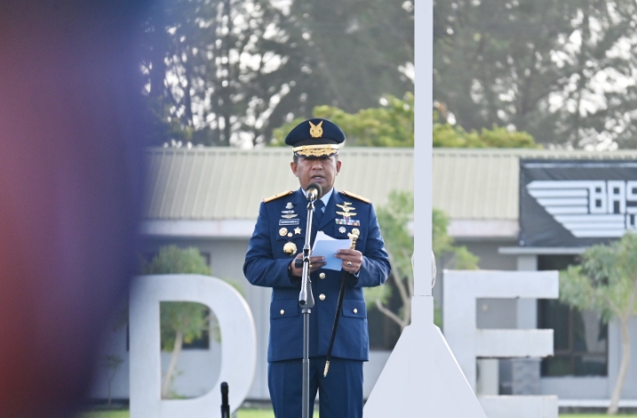 Komandan Lanud RSA Marsekal Pertama TNI Onesmus Gede Rai Aryadi, S.E., M.M., M.Han., bertindak sebagai inspektur upacara dan membacakan amanat Presiden Republik Indonesia Bapak Prabowo Subianto pada peringatan Hari Bela Negara Tahun 2025.