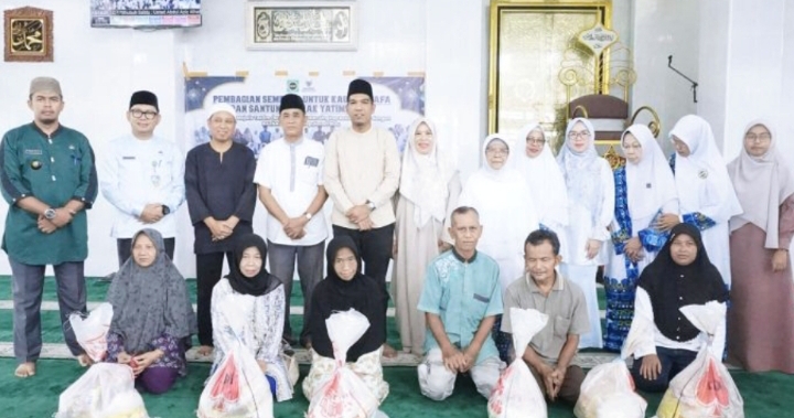 LINGGA — Novrizal menghadiri kegiatan pembagian sembako untuk kaum dhuafa dan santunan bagi anak yatim piatu yang digelar di Masjid Az Zulfa, Kecamatan Singkep, Kamis (26/2/2026).